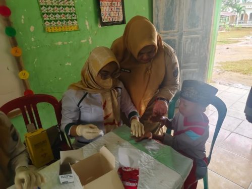 “Dalam kegiatan ini kami mengambil sampel darah dari 12 siswa kelas 1 dan 2 menggunakan Brugia Test Plus, hasilnya semua negatif,” jelas dr. Irfan.